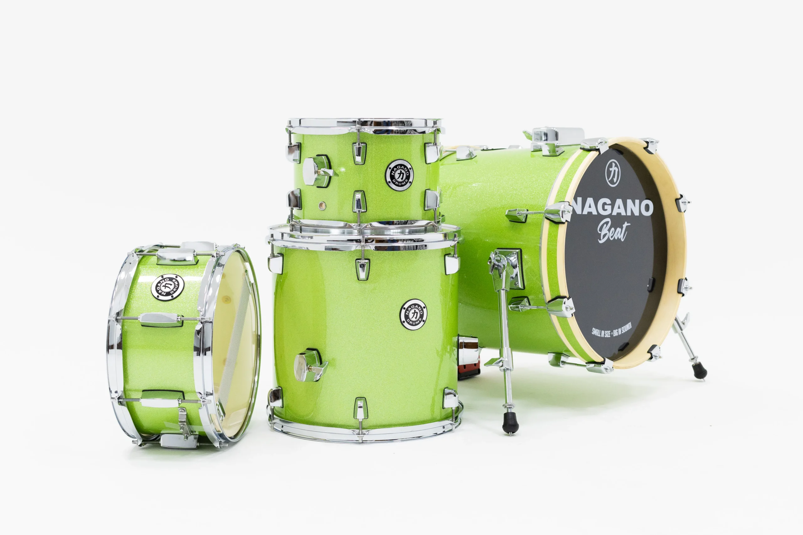 * Instrumento em configuração compacta perfeito como kit de rua. Pode também ser uma bateria infantil de padrão adulto e profissional;