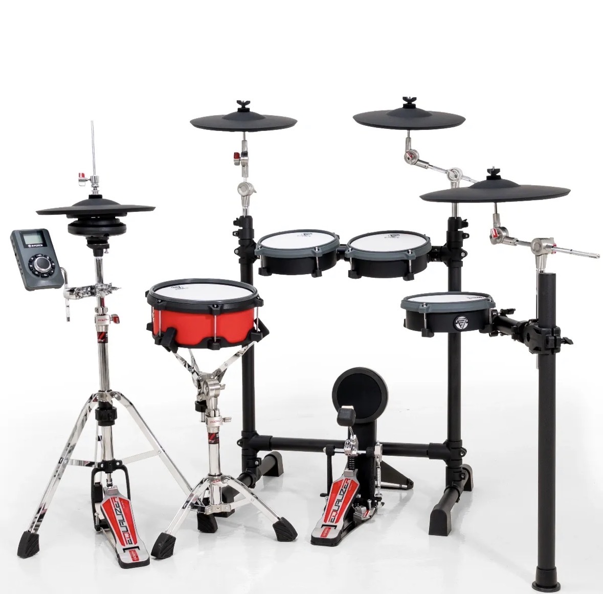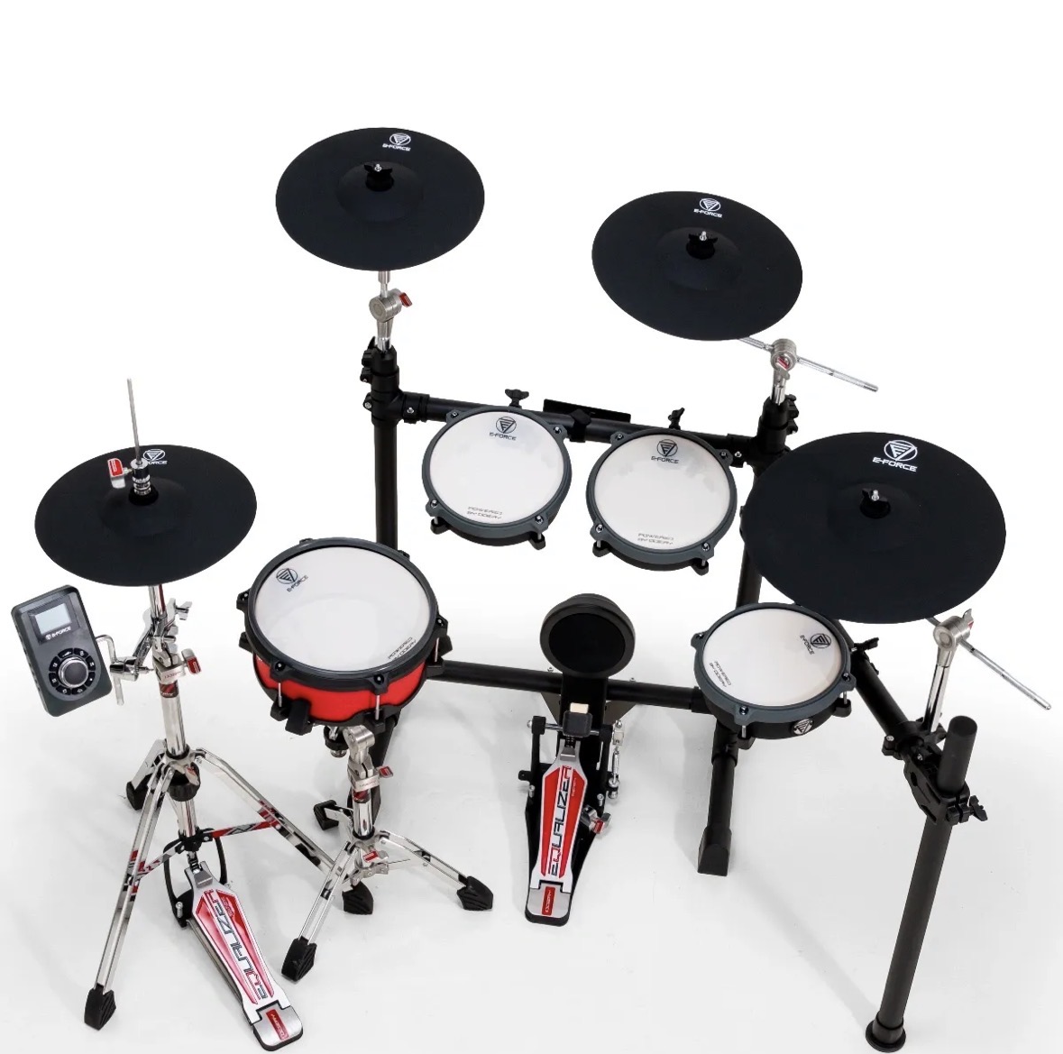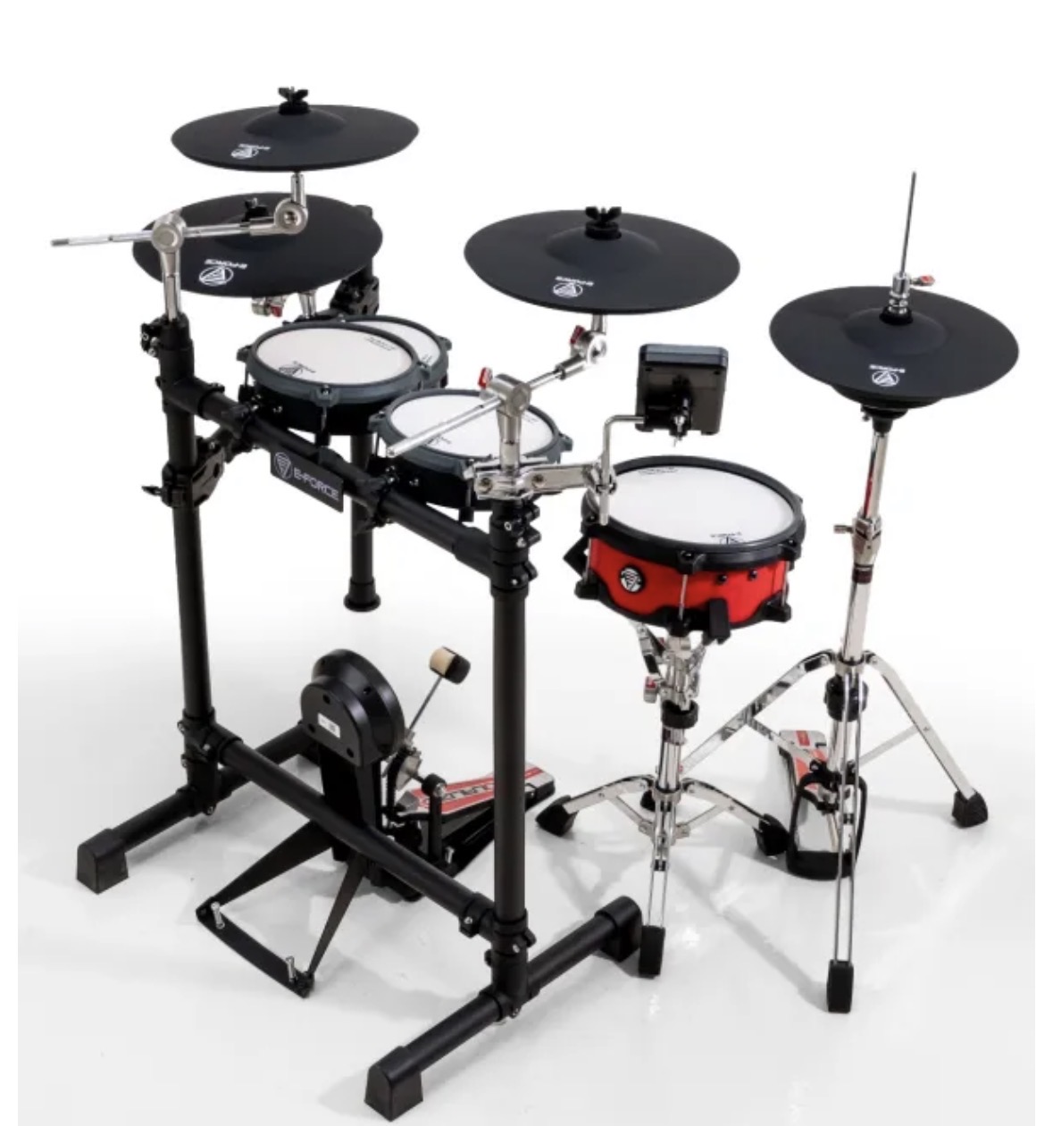 Com hi-hat de 12″, crashes de 12″, ride de 14″ com 3 zones, rack profissional e ferragens Equalizer inclusas, a EF2 V4 entrega um setup mais próximo da proposta de uma bateria acústica, com mais conforto, estabilidade e percepção de valor.