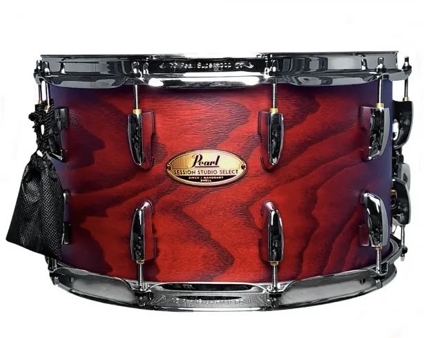 Caixa Pearl 14 x 8” Session Studio Select Scarlet Ash com Casco Fino Híbrido em Mogno e Birch e Aros SuperHoop 2.3mm