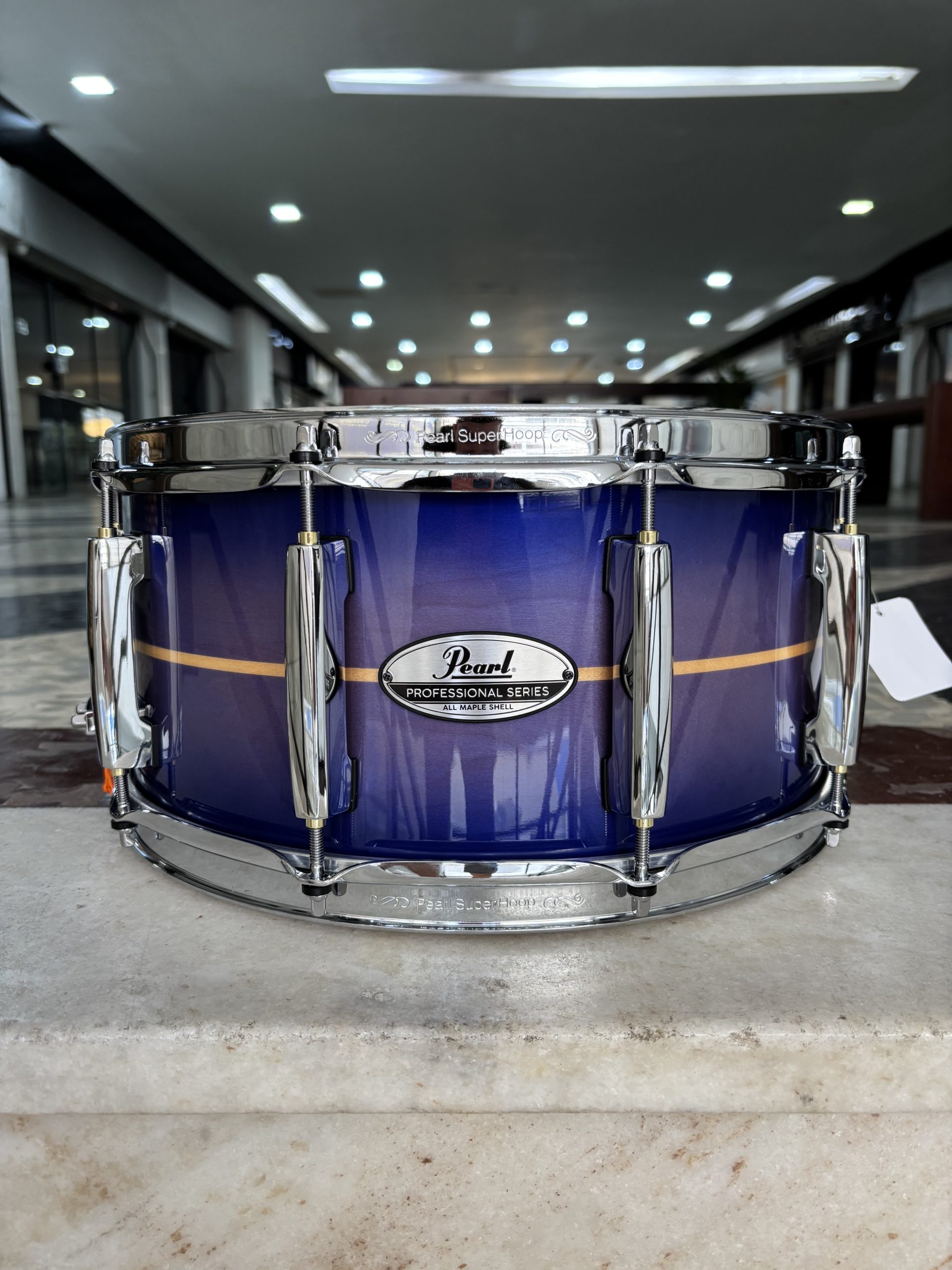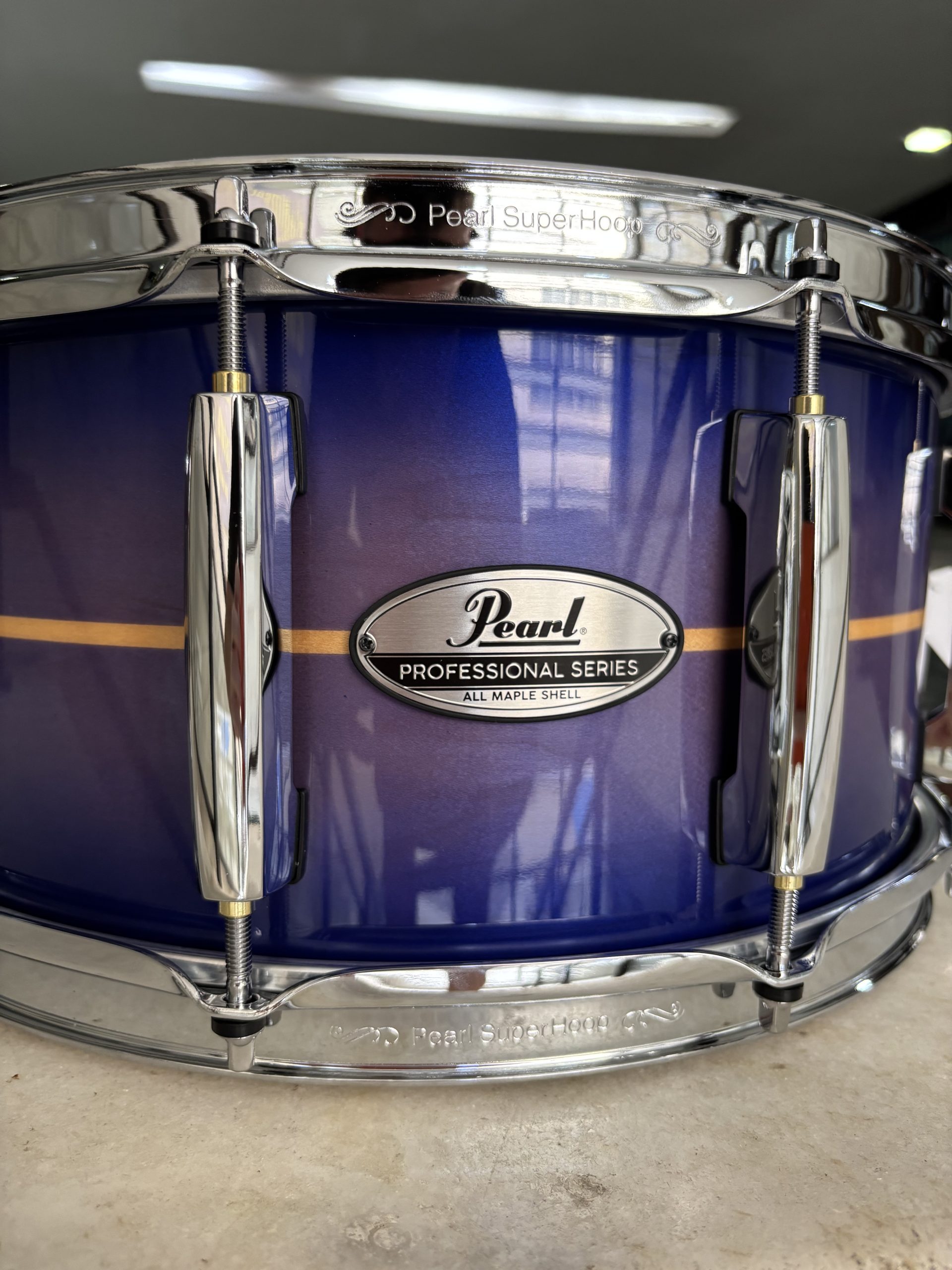 Caixa Pearl Professional 14X6,5 Em Maple Laqueado Royal Blue Burst Stripe